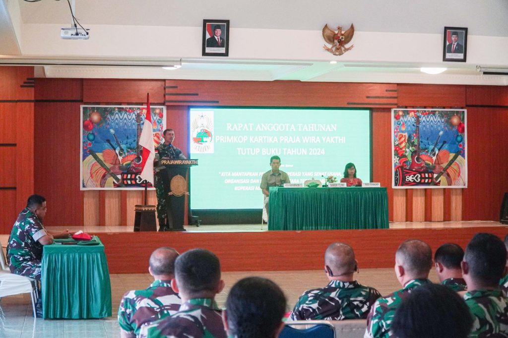 Jayapura – Rapat Anggota Tahunan (RAT) Primer Koperasi Kartika Praja Wira Yakthi Tutup Buku Tahun 2024 digelar di Aula Makorem 172/PWY, Distrik Abepura, Kota Jayapura, pada Jumat (14/3/2025).