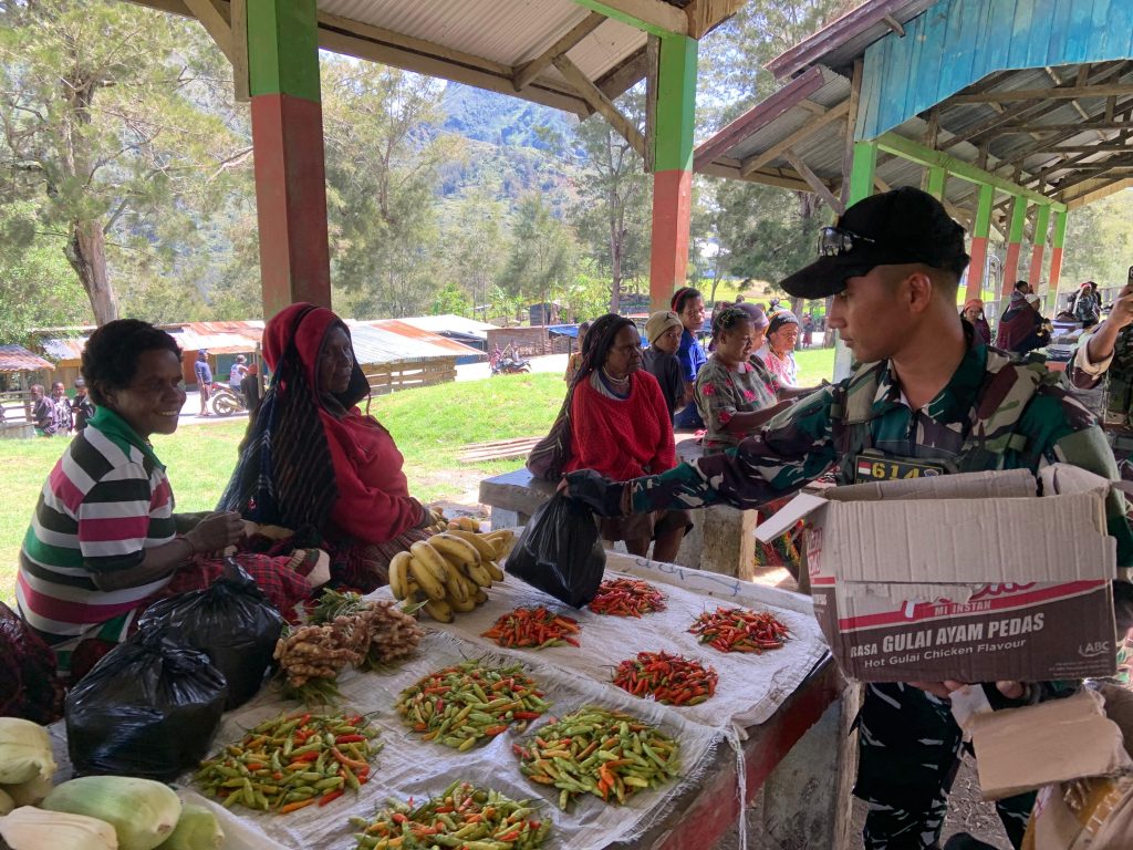 Lanny Jaya – Satgas Pamtas RI-PNG Kewilayahan Yonif 614/RJP Pos Pirime kembali menggelar Bakti Sosial Pemberian Sembako dalam rangka menyambut Bulan Suci Ramadhan 1446 H/2025 M yang diberikan kepada masyarakat binaan yang bertempat di Pasar Pirime Kampung Ekanom, Distrik Pirime, Kabupaten Lanny Jaya, Papua Pegunungan, Senin (03/3/2025).
