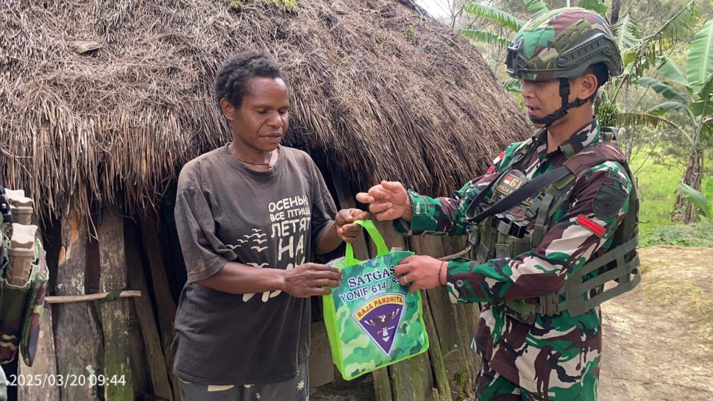 LANNY JAYA – Satgas Pamtas RI-PNG Kewilayahan Yonif 614/RJP di bawah pimpinan Danpos Tima Lettu Inf Ilham Syukri Ramadhan tak henti-hentinya selalu melakukan yang terbaik dan selalu dekat dengan masyarakat di wilayah penugasan papua sebagai wujud kepedulian dan kasih sayang.