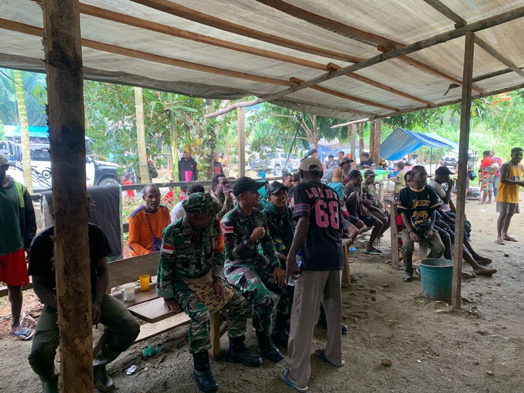 Dalam suasana haru, personel Pos Benawa Satgas Yonif 641/Bru menghadiri acara duka atas meninggalnya Bapak Sual Swi, Ondoafi Kampung Ruja, Distrik Benawa, Kabupaten Yalimo, Provinsi Papua Pegunungan, (09/03/2025).