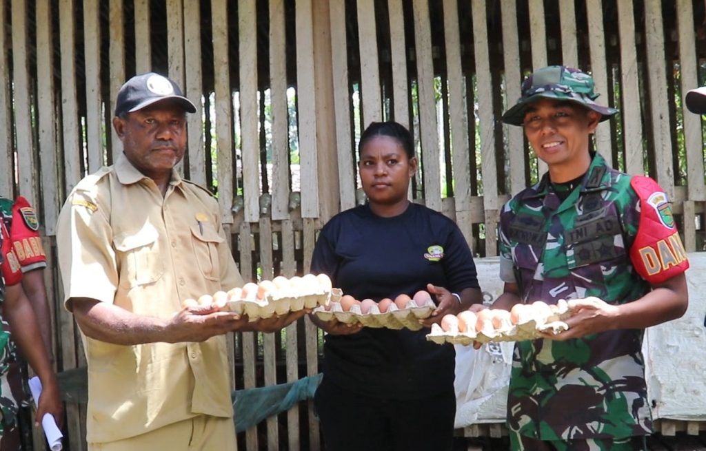 Didampingi oleh Babinsa Koramil 1709-01/Serui serta aparat kampung setempat, Dandim 1709/Yawa tidak hanya memberikan edukasi mengenai manajemen peternakan dan peningkatan produktivitas, namun juga ikut serta dalam proses produksi telur ayam sebagai bentuk dukungan terhadap nyata UMKM lokal di sektor peternakan.