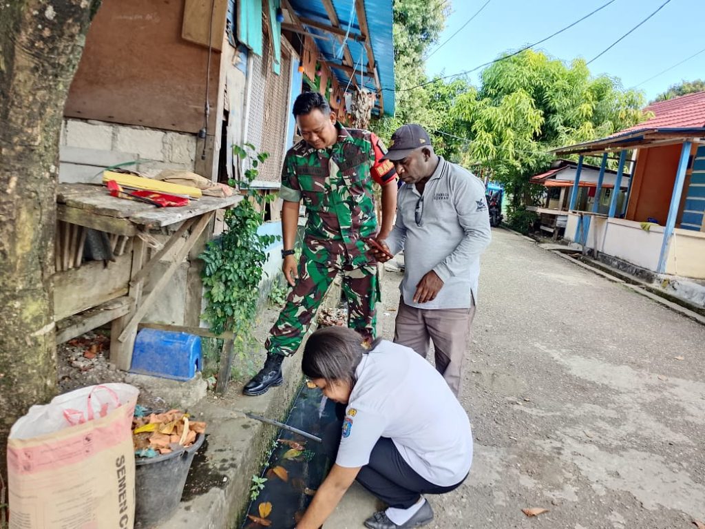 Yapen — Dalam upaya meningkatkan kesehatan masyarakat serta mencegah penyebaran penyakit malaria, Babinsa Koramil 1709-01/Serui, Sertu Nanang Pujianto, bersama Penanggung Jawab Program Kesehatan Lingkungan Puskesmas Serui Kota, Bpk. Obertoni Numberi, A.M.K.L., dan Ibu Nandan Maniagasi, A.Md.Kep., melaksanakan kegiatan peninjauan lokasi-lokasi yang berpotensi menjadi tempat berkembang biaknya nyamuk, khususnya di wilayah Kampung Banawa, Distrik Yapen Selatan, Kabupaten Kepulauan Yapen, Selasa (17/6/2025).