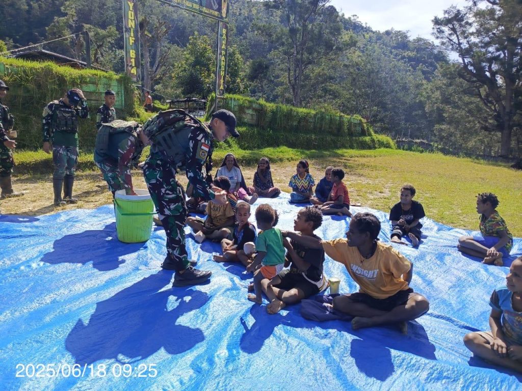 LANNY JAYA – Alhamdulillah, dengan kesederhanaan, di Minggu ke 49 kali ini, Personil Pos Tima Satgas Yonif 614/RJP kembali membantu masyarakat, dengan Swadaya Pos melaksanakan Kegiatan Teritorial, Memberikan Makan Bergizi Gratis ( MBG ) Kepada Masyarakat yang ada disekitaran tempat Desa Tima, Distrik Balingga, Kab. Lanny Jaya, Papua Pegunungan, Rabu (18/6/2025).