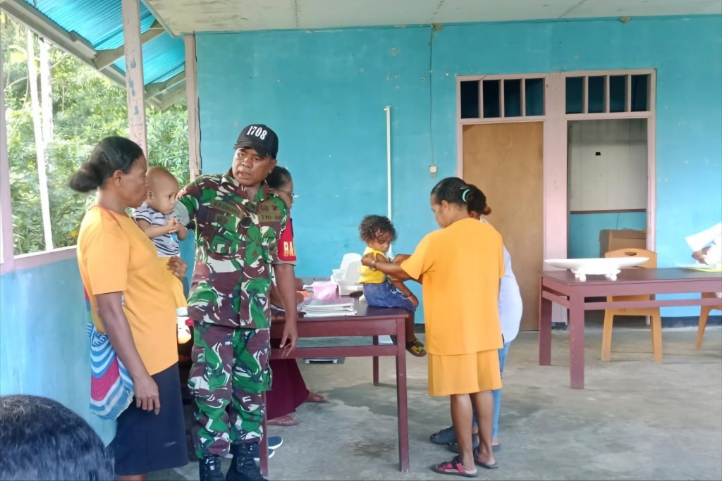 Biak Timur – Wujud nyata kepedulian TNI terhadap kesehatan masyarakat kembali terlihat dalam kegiatan Posyandu Balita, Babinsa Posramil 1708-01/Biak Timur, Kopka Absalom Dimara, turut mendampingi petugas kesehatan demi mendukung kelancaran pelayanan Posyandu bertempat di Kampung Yenusi, Distrik Biak Timur, Kabupaten Biak Numfor, Jumat (20/6/2025).