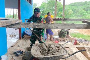 Biak Utara - Wujud kepedulian terhadap masyarakat binaannya kembali ditunjukkan Babinsa Koramil 1708-02/Biak Utara, Serda Alfret Foom yang ikut turun...