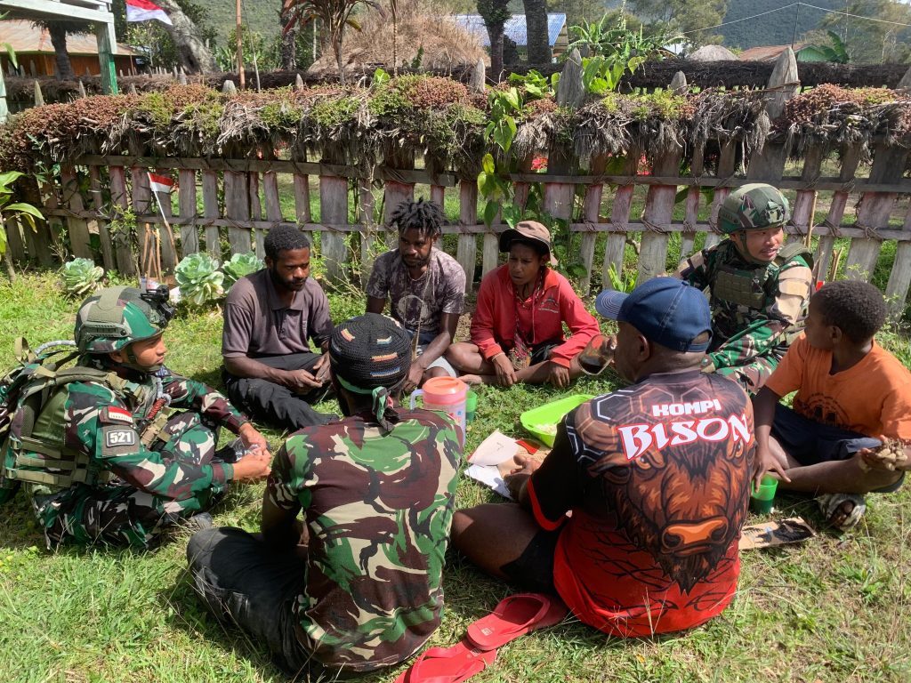 Jayawijaya – Guna mempererat keakraban dan tali silaturahmi antara TNI dan masyarakat , Satgas Yonif 521/DY melalui Pos Bolakme melaksanakan Komunikasi Sosial (Komsos) dengan warga masyarakat, Sabtu (23/08/2025).