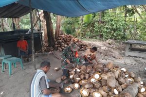 Numfor - Dalam upaya mendukung peningkatan ekonomi masyarakat di wilayah binaannya, Babinsa Koramil 1708-05/Numfor, Serka Sampurno turun langsung membantu warga...