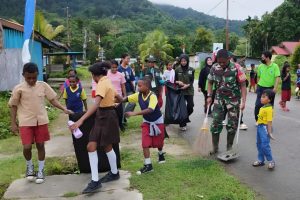 Supiori - Dalam rangka menciptakan lingkungan yang bersih, sehat, dan nyaman, Koramil 1708-04/Supiori Selatan bersama mahasiswa Kuliah Kerja Nyata (KKN)...