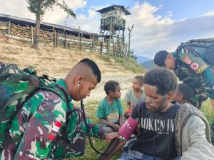 LANNY JAYA - Wujud kepedulian terhadap kesehatan masyarakat binaan, Satgas Yonif 614/RJP Pos Popome melaksanakan pengobatan gratis di Desa Popome,...
