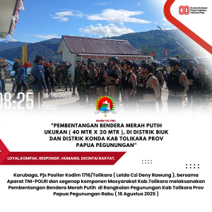 Karubaga, Pjs Pasiter Kodim 1716/Tolikara ( Letda Czi Deny Rawung ), bersama Aparat TNI-POLRI dan segenap komponen Masyarakat Kab.Tolikara melaksanakan...
