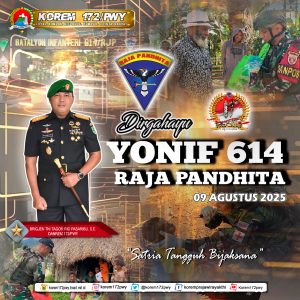 "DIRGAHAYU YONIF 614/RAJA PANDHITA" "SATRIA TANGGUH BIJAKSANA" 09 AGUSTUS 2025