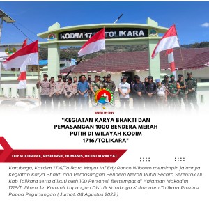 Karubaga, Kasdim 1716/Tolikara Mayor Inf Edy Ponco Wibowo memimpin jalannya Kegiatan Karya Bhakti dan Pemasangan Bendera Merah Putih Secara Serentak...