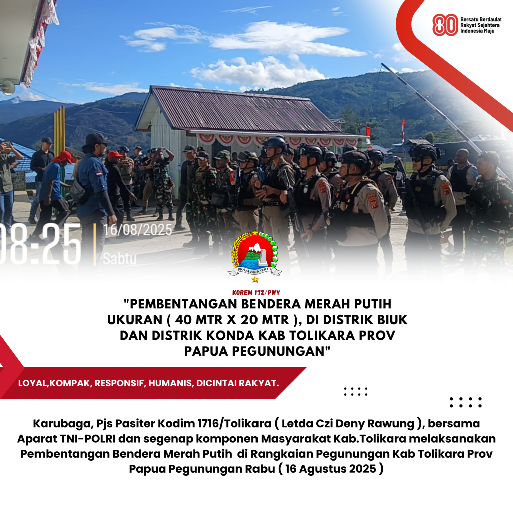 Dengan Motto HUT Ke-80 Republik Indonesia Tahun 2025 ” Bersatu Berdaulat,Rakyat Sejahtera,Indonesia Maju.Seluruh Lapisan Masyarakat di Wilayah Kabupaten Tolikara siap mensukseskan Perayaan HUT Ke-80 Republik Indonesia