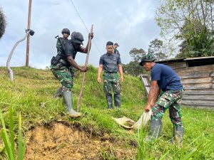 Tiom – Satgas Yonif 511/DY melaksanakan kegiatan karya bakti pembenahan kamar mandi Gereja Katolik Baptis Kogoyaluk , yang terletak di...