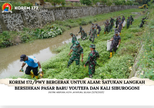 Jayapura – Prajurit Korem 172/PWY turut ambil bagian dalam aksi karya bakti pembersihan lingkungan di Pasar Baru Youtefa, Jalan Otonom,...