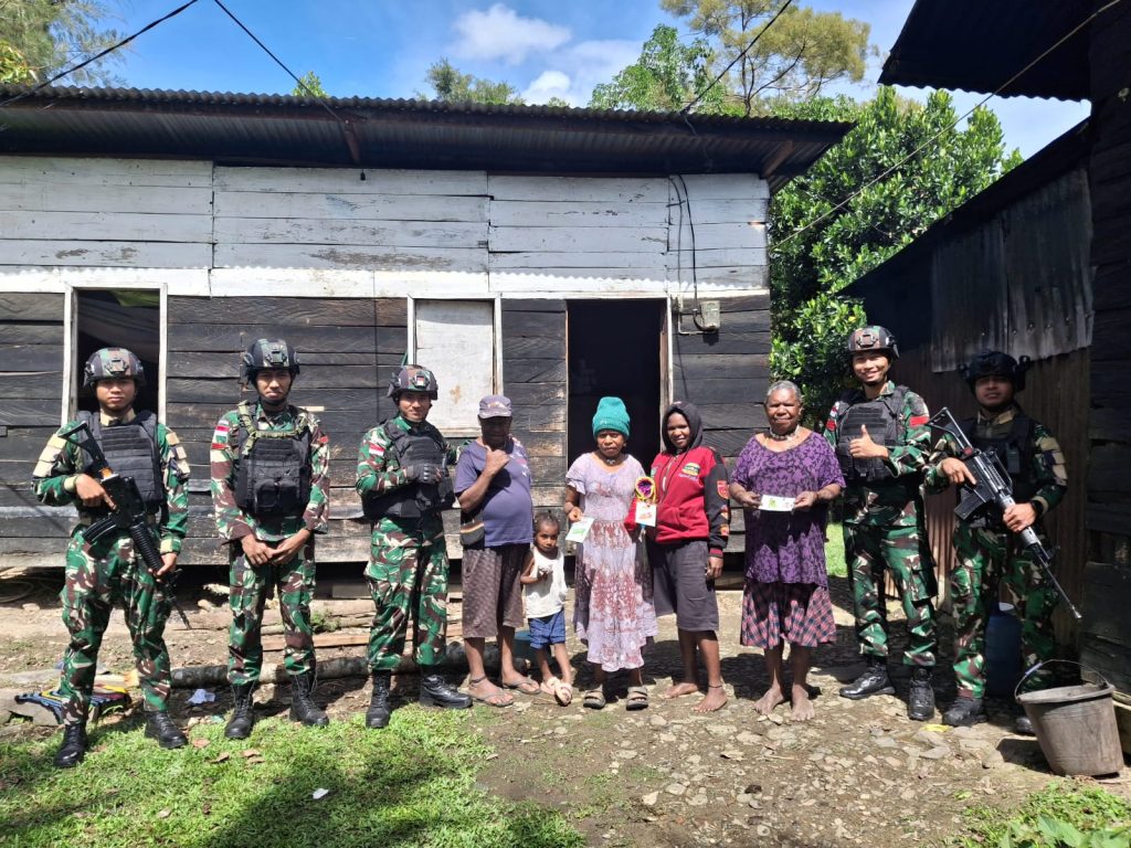 Selanjutnya beliau menyampaikan bahwa Satgas Yonif 511/DY menggelar Kegiatan Teritorial yang bertajuk ” Sehelai Kegembiraan di Perbatasan” saat berpatroli di Kampung Kogome, Distrik Karubaga, Sabtu (4/10/2025).