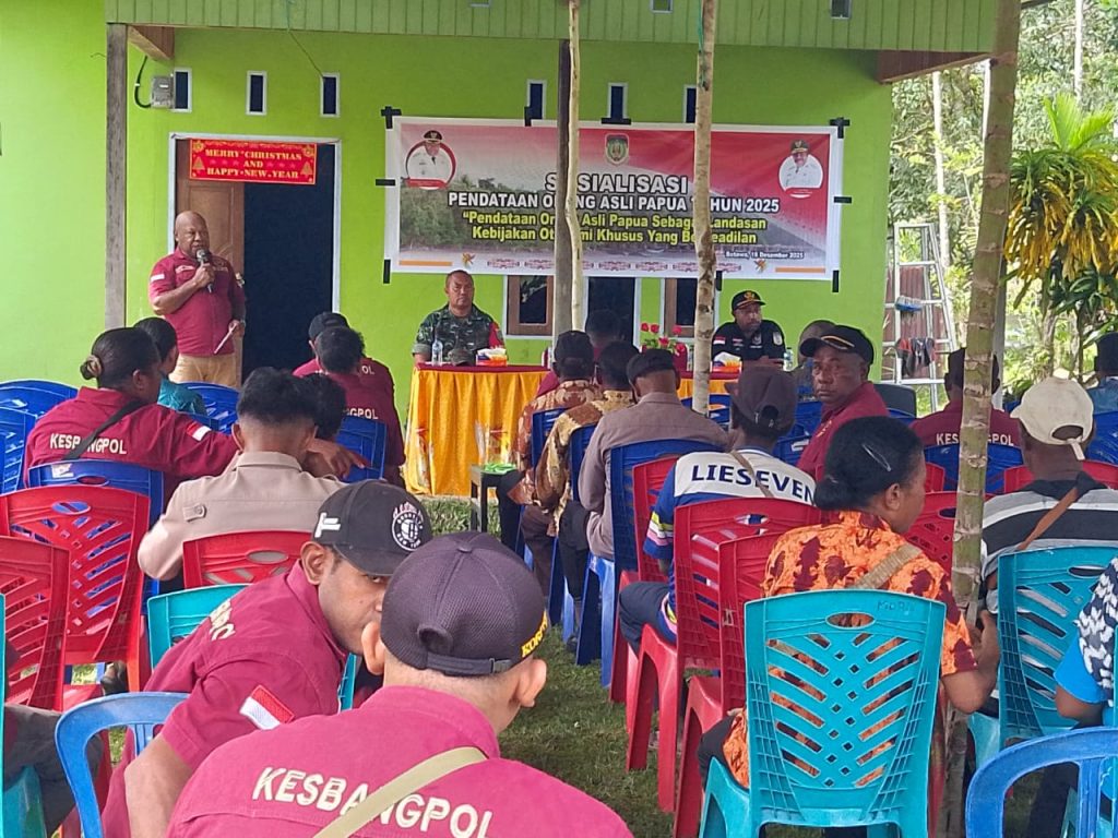 Waropen – Bertempat di Kampung Pirare, Distrik Wapoga, Kabupaten Waropen, Babinsa Koramil 1709-03/Waropen Bawah Serka La Ode Salimudin menghadiri kegiatan Sosialisasi Pendataan Orang Asli Papua (OAP) sebagai landasan pelaksanaan Otonomi Khusus yang berkeadilan, Jumat (19/12/2025).