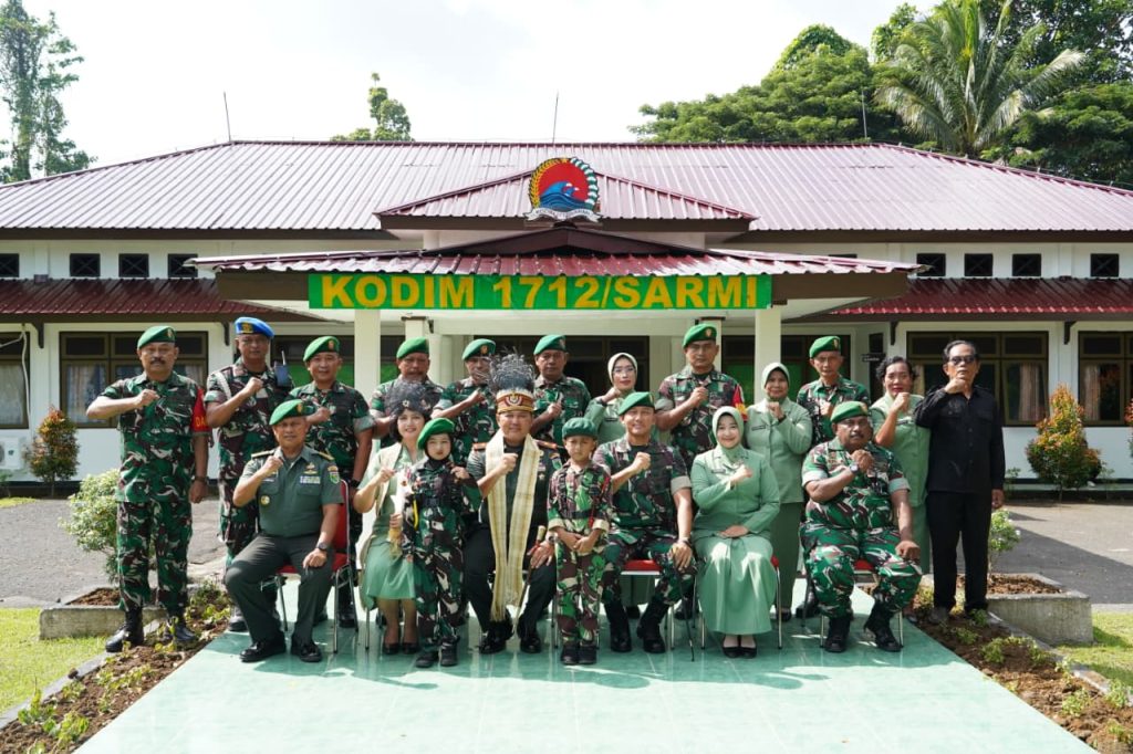 Sarmi ~ Komandan Korem 172/Praja Wira Yakti (PWY) Brigjen TNI Tagor Rio Pasaribu, S.E., melaksanakan kunjungan kerja ke Markas Komando Distrik Militer (Makodim) 1712/Sarmi, Kabupaten Sarmi, Senin (19/01/2026). Kunjungan tersebut turut didampingi Ketua Persit Kartika Chandra Kirana (KCK) Koorcab Rem 172, Ny. Gracia Tagor Rio Pasaribu, beserta rombongan.