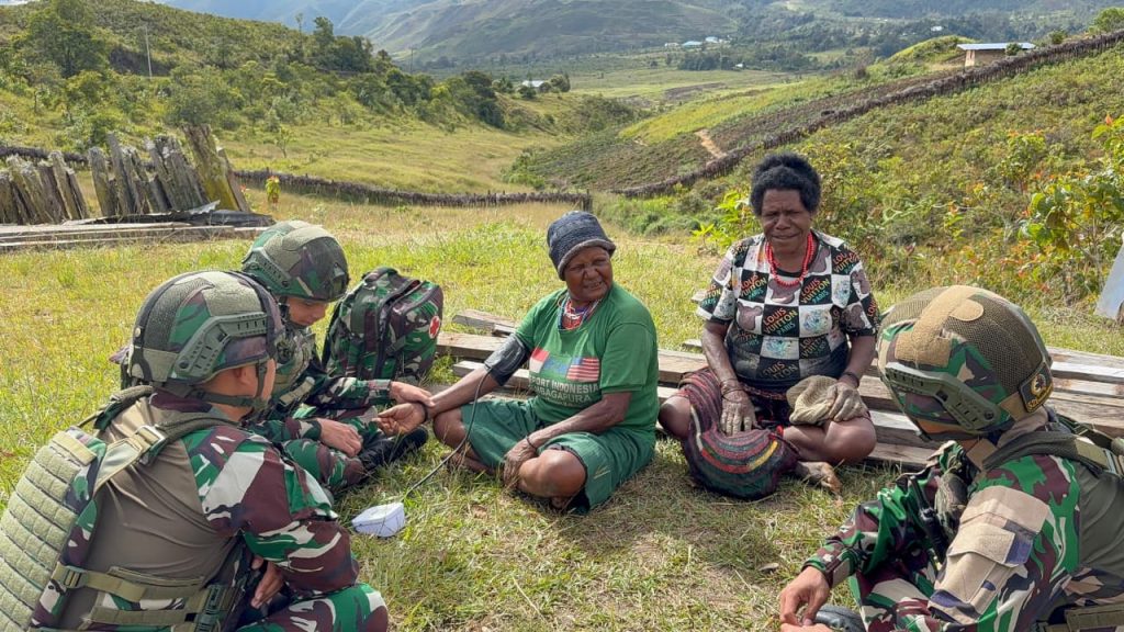 Napua — Satgas Yonif 521/DY terus menunjukkan kepedulian dan komitmennya dalam membantu masyarakat di wilayah penugasan. Melalui kegiatan teritorial (Binter), personel Satgas Yonif 521/DY melaksanakan anjangsana dengan menyambangi rumah-rumah warga sekaligus menyalurkan bantuan sembako serta memberikan layanan kesehatan gratis kepada masyarakat di Distrik Napua, Kabupaten Jayawijaya, Papua Pegunungan, Sabtu (31/01/2026).