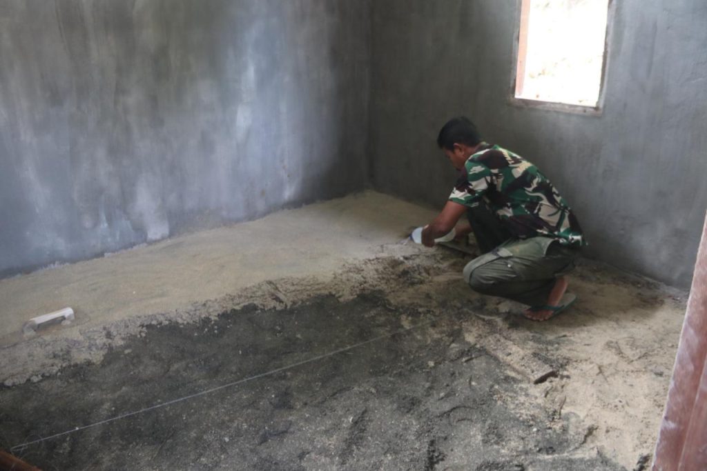 “Di bulan yang penuh berkah ini, kami terus berkomitmen menumbuhkan semangat kemanunggalan TNI bersama rakyat dalam pengerjaan 8 unit rumah layak huni untuk warga. Hari ini kami maksimalkan pekerjaan, mulai dari pengecoran lantai, plester dinding hingga pengecatan,” ungkap Serka Prayogo.
