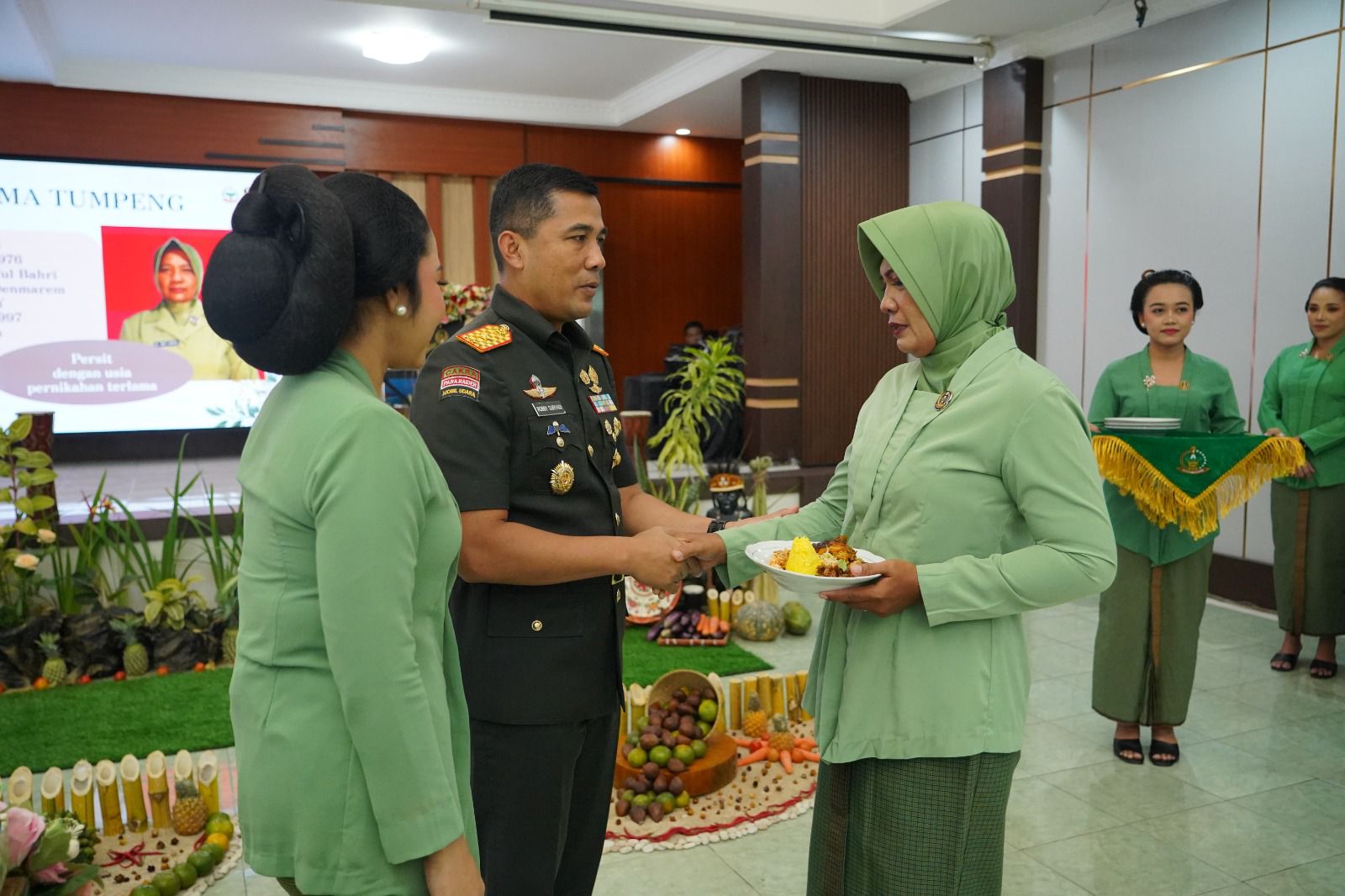 Kegiatan dilanjutkan dengan penayangan sambutan Ketua Umum Persit KCK, prosesi pemotongan tumpeng sebagai wujud rasa syukur, serta pembagian doorprize kepada anggota Persit yang semakin menambah semarak acara.