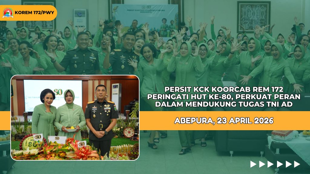 Jayapura – Persit Kartika Chandra Kirana (KCK) Koorcab Rem 172/PWY memperingati Hari Ulang Tahun (HUT) ke-80 dengan menggelar kegiatan penuh khidmat di Aula Makorem 172/PWY, Kamis (23/4/2026).