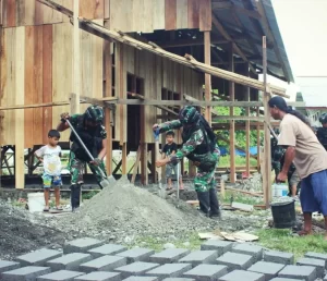 Membantu wujudkan tempat ibadah yang nyaman, personel Satgas Pamtas Yonif 126/KC Pos Bompay bersama masyarakat mengadakan gotong royong merenovasi lantai...