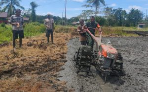 Waren - Guna mendukung Program Ketahanan Pangan Nasional dan mendukung peningkatan kesejahteraan Petani yang ada diwilayah binaannya, Serka Julkarnain Babinsa...
