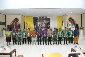 Sarmi -Dandim 1712/Sarmi, Letkol Czi Bagus Marsudi Joko Hartono menghadiri acara rapat pleno terbuka perhitungan suara Gubernur Wakil Gubernur dan...