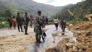 Kodim 1702/JWY pada Senin pagi mengirim puluhan prajurit ke lokasi bencana tanah longsor di Distrik Poga, Kabupaten Tolikara, Papua, guna...